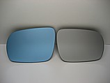 Kleines 125mm Spiegelglas in blau für die linke Seite und der Vergleich vom