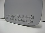 Kleines 125mm Spiegelglas weiß für d. rechte Seite m. arabisch. Beschriftung