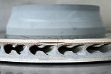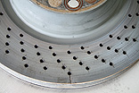 Gerissene Bremsscheibe von einem Porsche 911 Turbo Typ 996 von der Vorder-