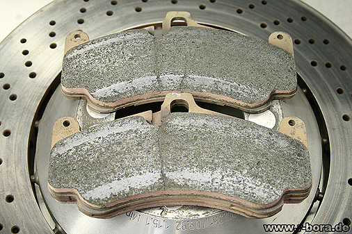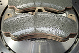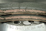 Bremsbeläge mit Hitzerissen von einem Porsche 911 GT3 Typ 997 von der